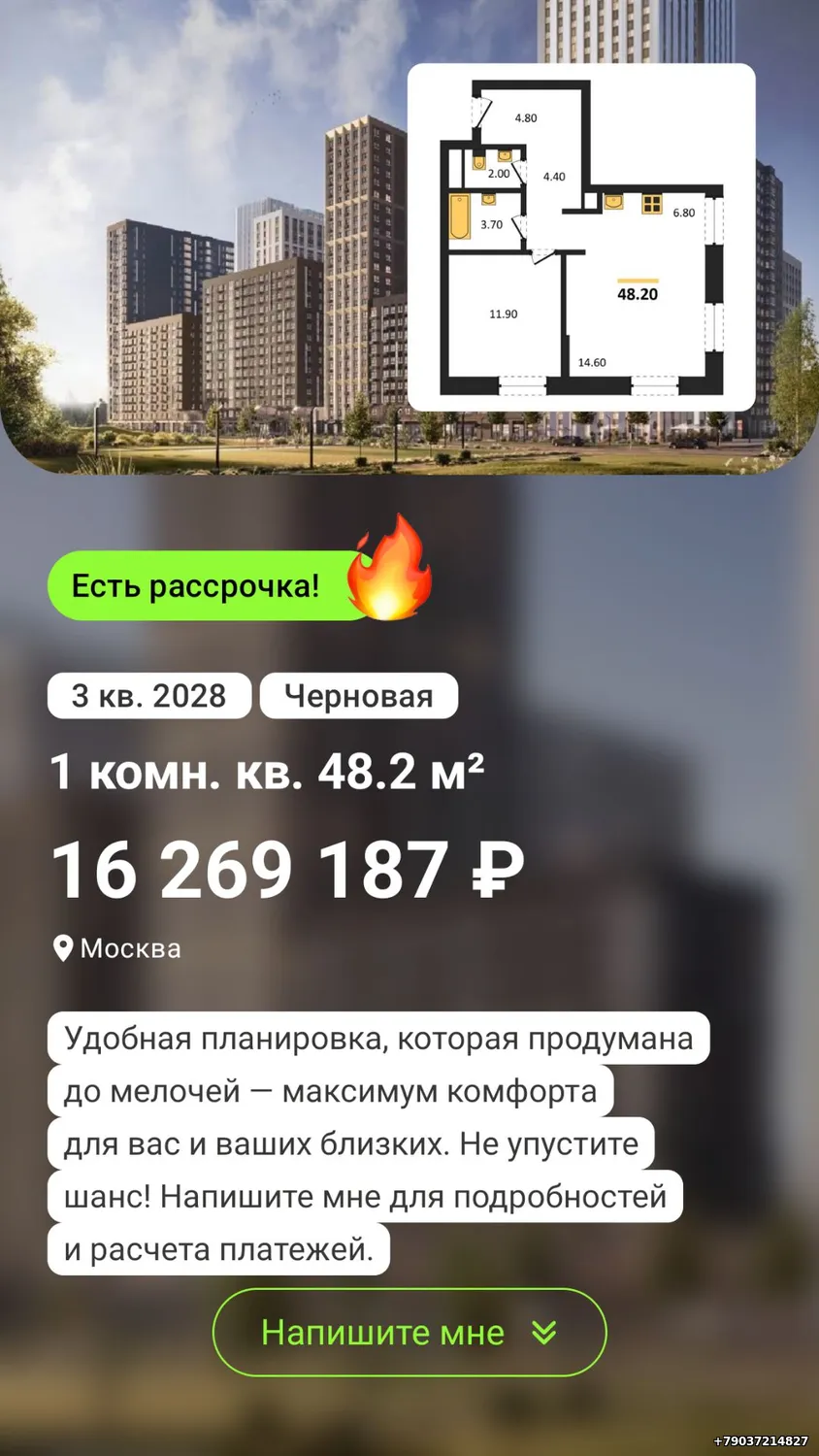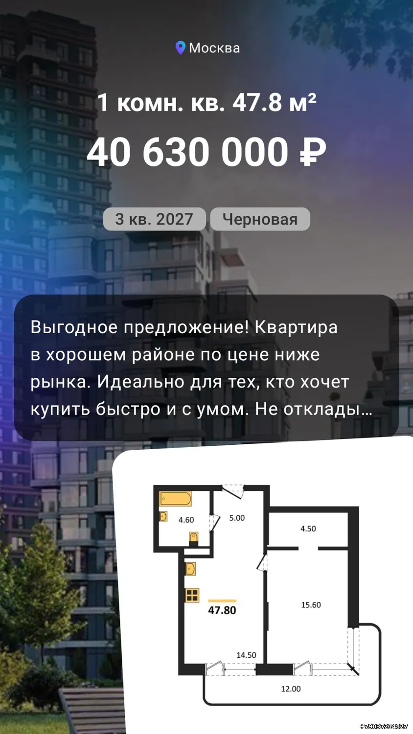 Игорь, номер телефона +7 (903) 721-4827, интересуется новостройками в Москве и Московской области. Он просматривает каталог на сайте http://2025-v-betone.novostroiki-moskvy-i-oblasti.ru/catalog/?regionId=77. Вероятно, он находится в поиске квартиры или инвестиционного объекта в новостройке в данном регионе. Игорь, судя по всему, активно изучает рынок первичного жилья. Возможно, он уже определился с бюджетом и рассматривает конкретные районы, либо пока находится на этапе общего ознакомления с предложениями. Тот факт, что он использует фильтр по региону (regionId=77), говорит о его заинтересованности именно в московском регионе. Вероятно, он ищет варианты, соответствующие его потребностям по площади, планировке и инфраструктуре. Не исключено, что он сравнивает цены, оценивает репутацию застройщиков и изучает условия ипотечного кредитования. Возможно, он уже присмотрел несколько интересных объектов и планирует связаться с отделами продаж для получения более подробной информации и записи н...
